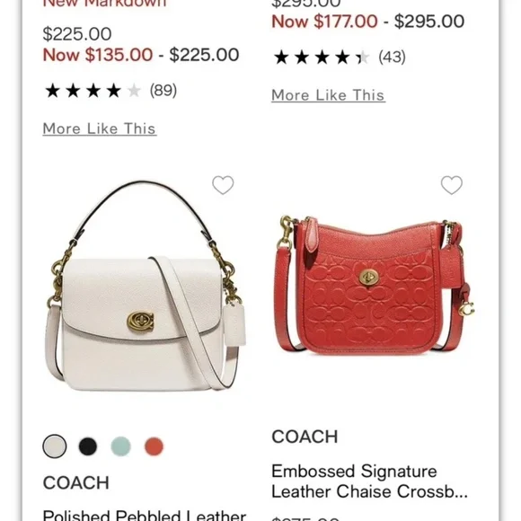 I never used this purse. It is in original packaging. Polished Pebbled Leather Cassie Crossbody 19.Leather, 100% authentic Mini sized bag; 7-3/4"W x 6-1/2"H x 3-1/4"D (width is measured across the bottom of handbag); 1.50 lbs. approx. weight• 9"L handle; 21-1/2"L adjustable strap• Turnlock closure• Brass-tone exterior hardware & 1 slip pocket• 1 interior zip pocket & 2 slip pockets. It has removable top handle, 9" drop and removable crossbody strap, 21.25" drop.. Currently it is sold at Macys for $295.00 withouttax. (See photos for proof…)